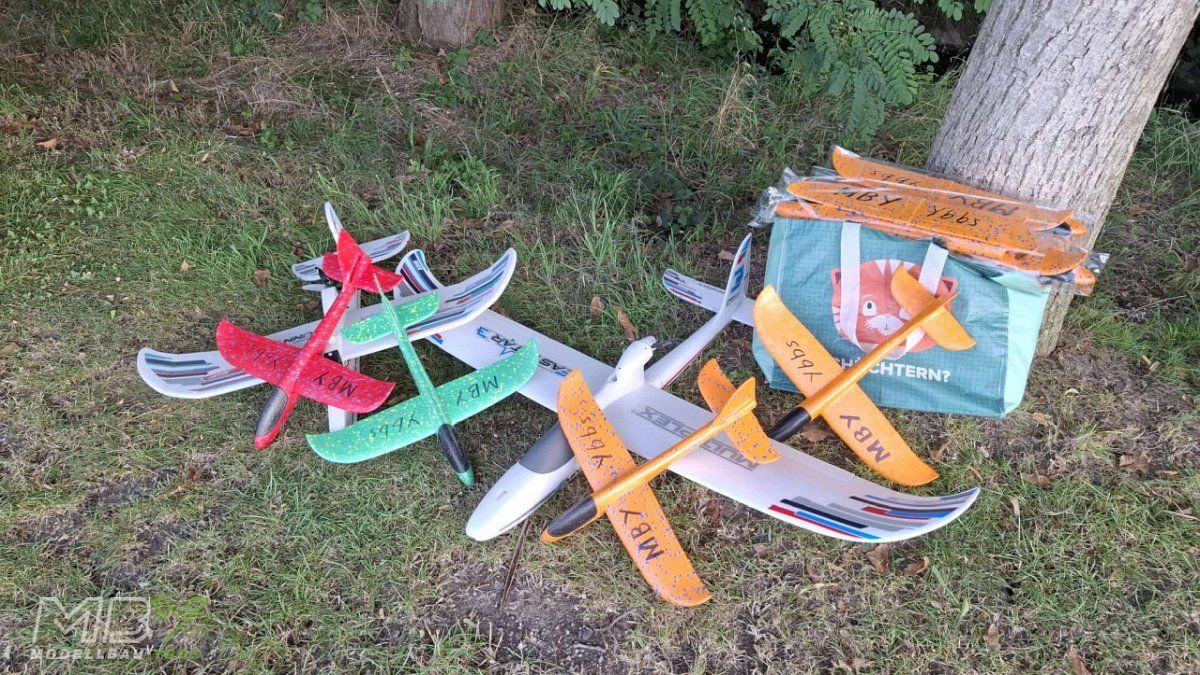 Die Kinder waren schon mal begeistert von den beiden tollen großen Fliegern. Anschließend wurden die Kinder in 4 Gruppen eingeteilt und wir gestalteten mit ihnen einen unterhaltsamen Vormittag, bei dem die Kinder spielerisch in das Hobby Modellflug eingeweiht wurden. Jeder der Kinder bemalte eine Zeichnung, bastelte einen professionellen Papierflieger, nahm am Weitwurf mit einem Styroporflieger teil und versuchte sich am Lehrer / Schüler System ein richtiges Modellflugzeug zu steuern. Das eine oder andere Naturtalent wurde entdeckt, und die Kinder hatten mächtig Spaß an den einzelnen Stationen.