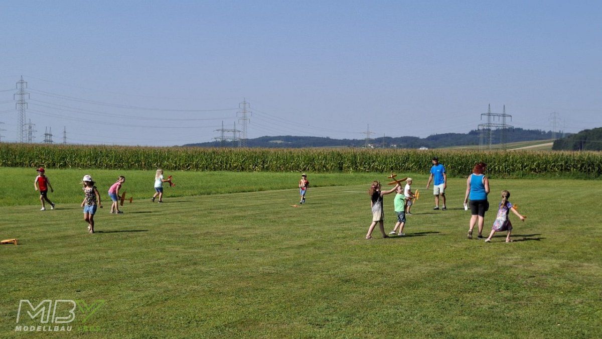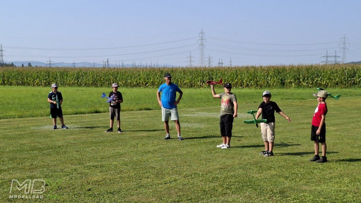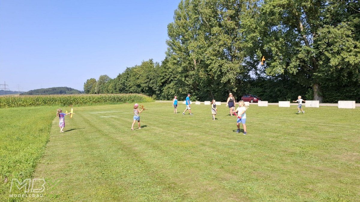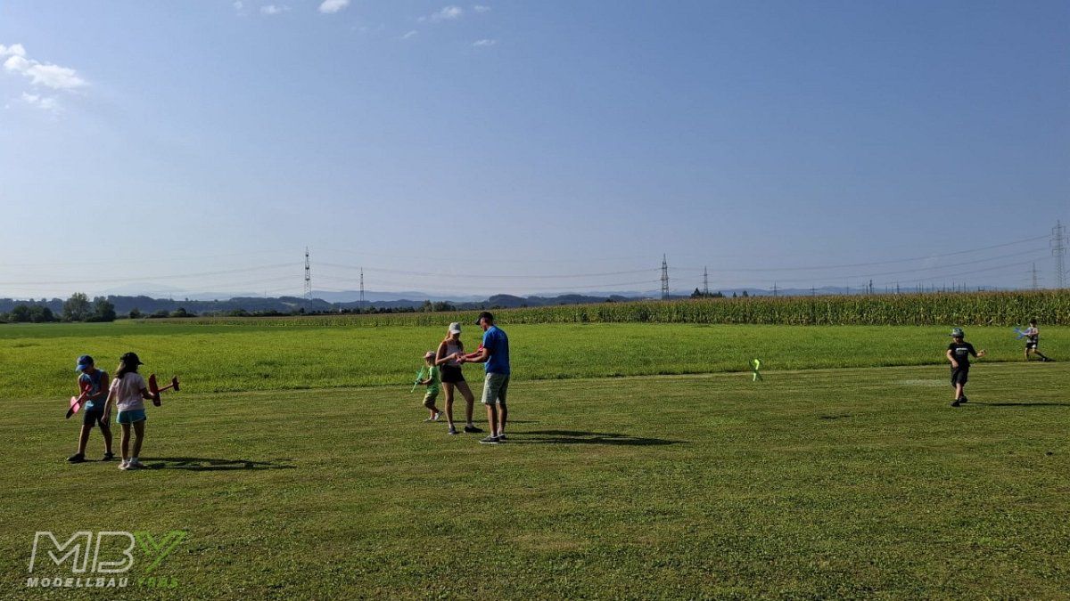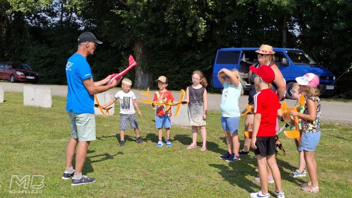Mehr als 20 Kinder fanden sich am Flugplatz des MBY - Modellbau Ybbs ein, um am 16. August 2025 beim Ferienspiel der Gemeinde Neumarkt teilzunehmen.