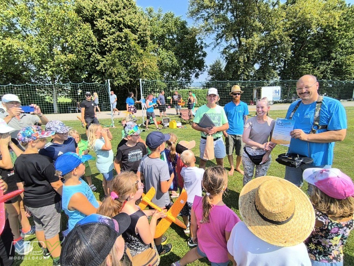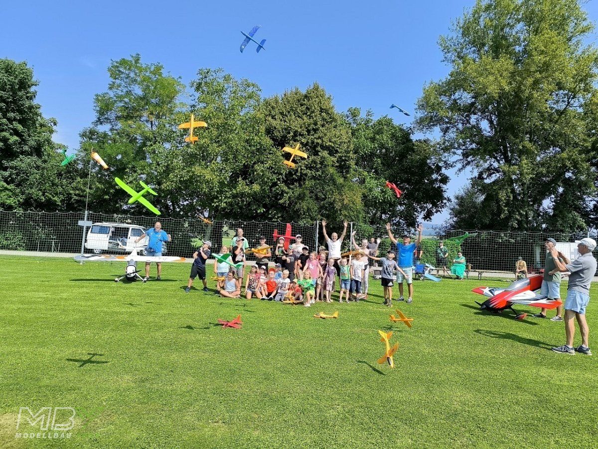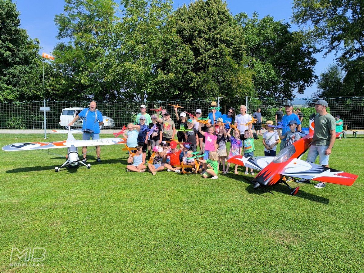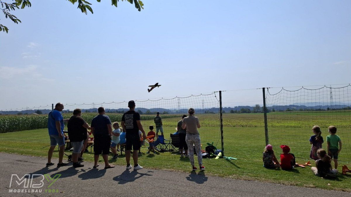Mehr als 20 Kinder fanden sich am Flugplatz des MBY - Modellbau Ybbs ein, um am 16. August 2025 beim Ferienspiel der Gemeinde Neumarkt teilzunehmen.